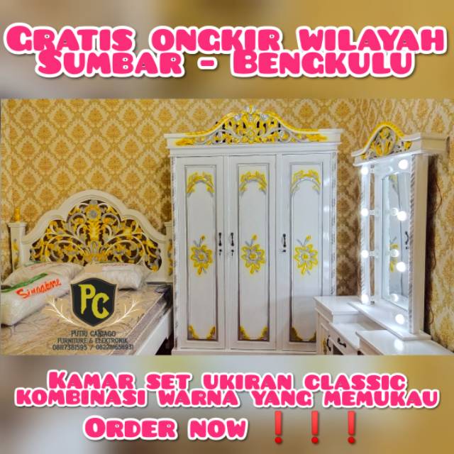Kamar set ukiran mewah minimalis kayu jati terbaru ini sebagai perabotan mebel interior rumah memang populer dan dikenal oleh setiap manusia. Desain kamar set tempat tidur yang elegant dan berkelas terdiri dari tempat tidur,lemari pakaian,nakas bedside dan meja rias yang cocok bagi kaum hawa untuk info dan pemesanan kamar set tempat tidur ukiran model terbaru silahkan hubungi call. Pada produk kamar set mewah ini teraplikasi finishing cat duco glossy dengan warna emas yang diberi sedikit taburan warna antik. Berilah penilaian bintang pada produk ini.